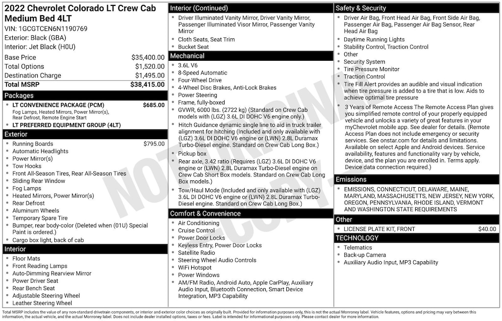 2022 Chevrolet Colorado LT 4WD 8-Speed Automatic 4D Crew Cab Black