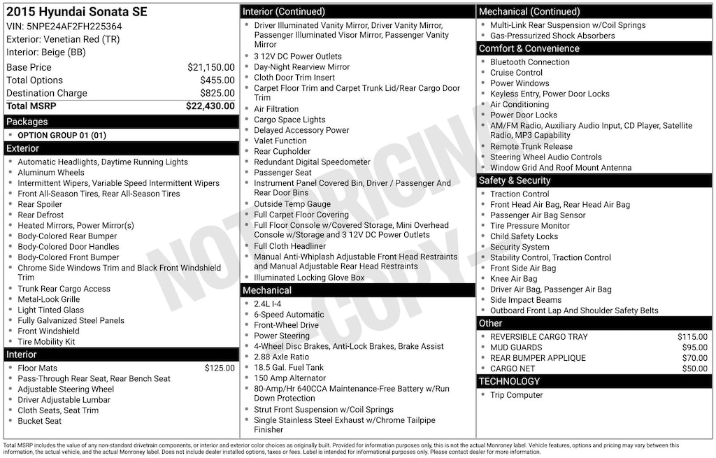 Spending time behind the wheel of the 2015 Hyundai Sonata SE makes everyday driving feel comfortable and uncomplicated. Morning commutes are smooth and quiet, weekend drives are relaxed, and longer trips feel less tiring thanks to a well-balanced ride and a spacious cabin. The interior offers a calm, open atmosphere that easily accommodates passengers and personal items, making this sedan a dependable choice for workdays, errands, and road trips alike.