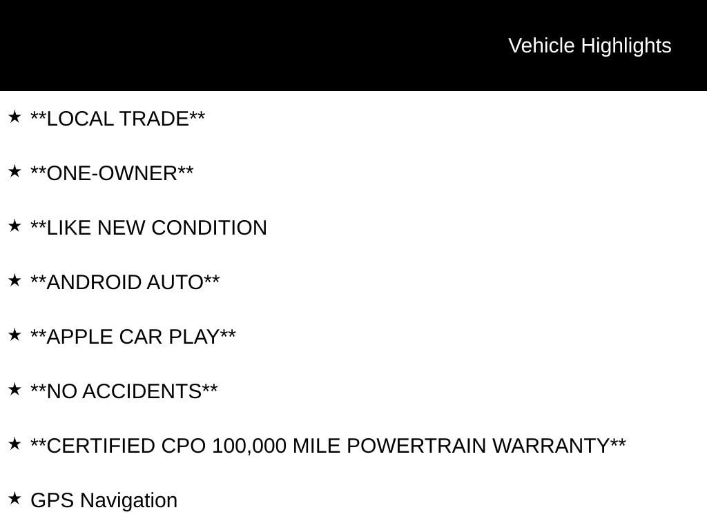 - Certified CPO 100,000 Mile Powertrain Warranty