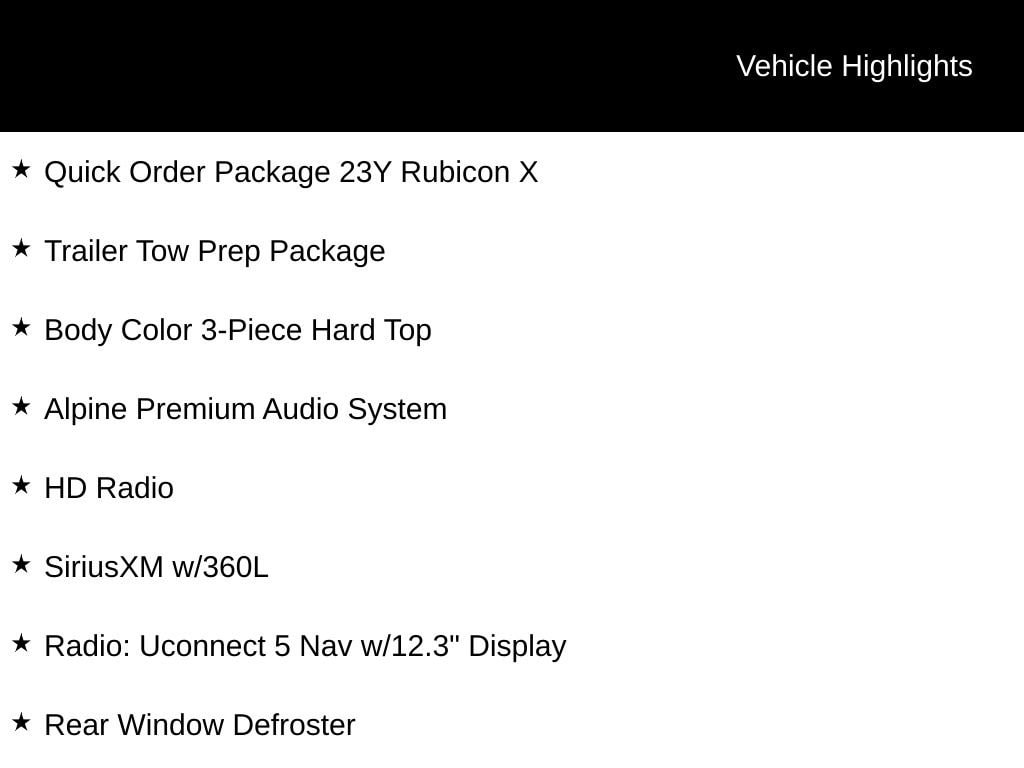 Elevate your driving experience and embrace the freedom of the open road with this exceptional 2025 Jeep Wrangler Rubicon X. Contact us today to schedule a test drive and discover how this iconic 4x4 can transform your daily commute and weekend getaways.